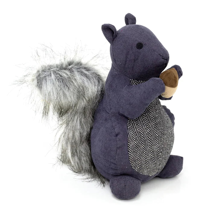 This adorable grey squirrel is more than just a door stop; she's a delightful addition to any living space. With her tightly clutched nut, cute button eyes, and a big bushy tail, she's brimming with character and warmth; let her sweet pose and friendly face add joy to your space!
