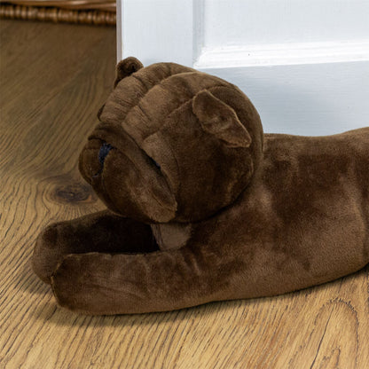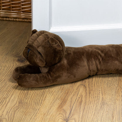 88cm Pug Draught Excluder | Plush Fabric Dog Shaped Door Draft Excluder - Brown