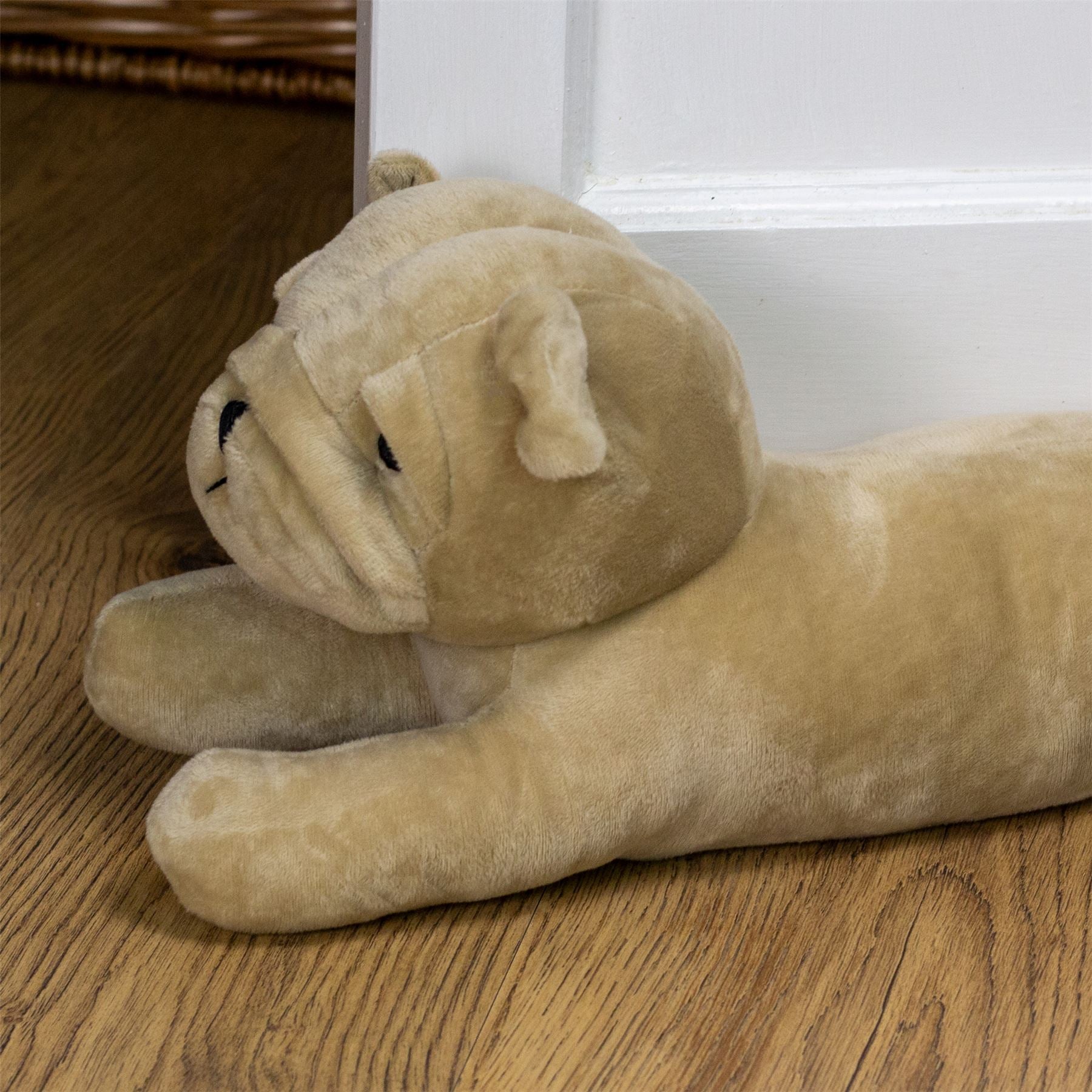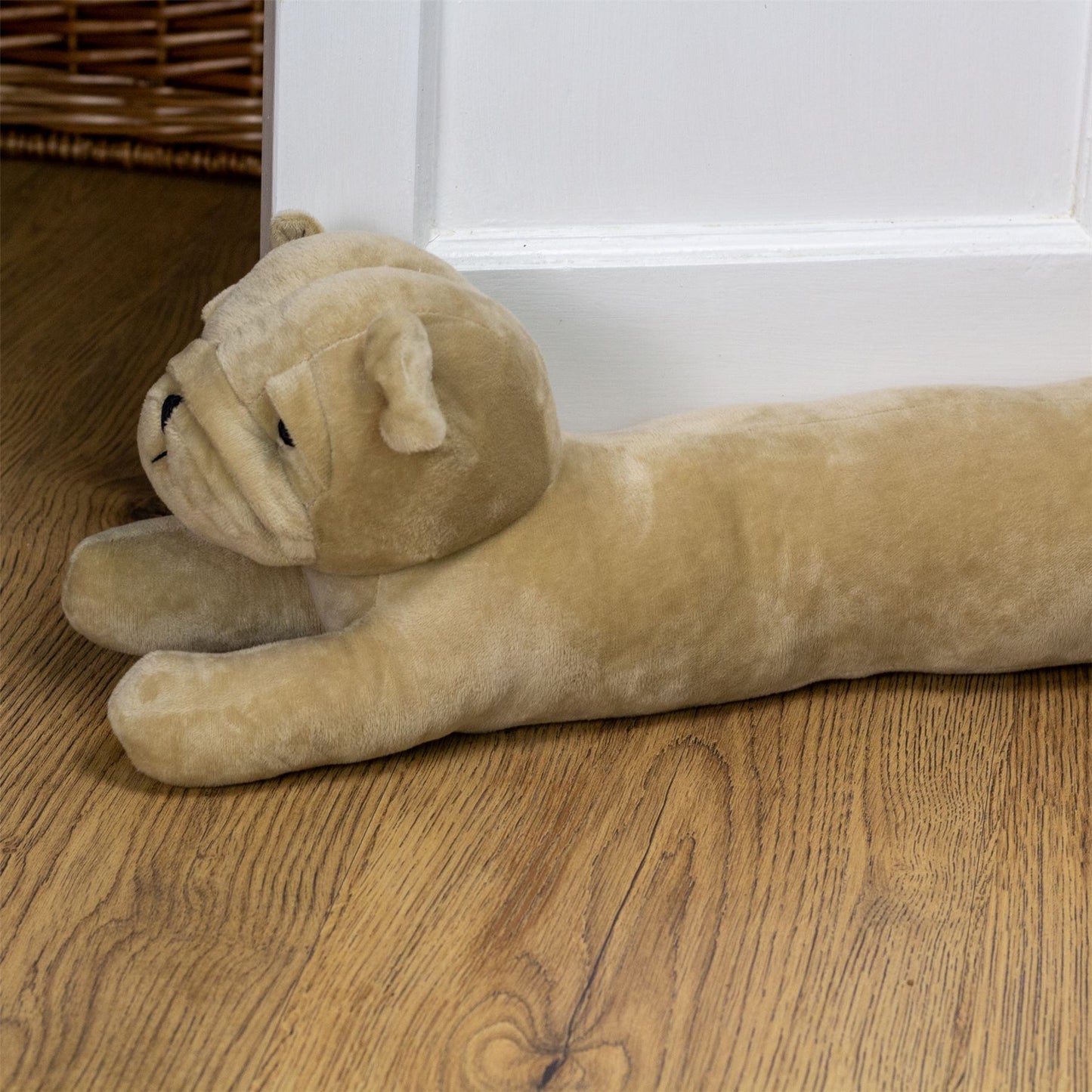 88cm Pug Draught Excluder | Plush Fabric Dog Shaped Door Draft Excluder - Cream
