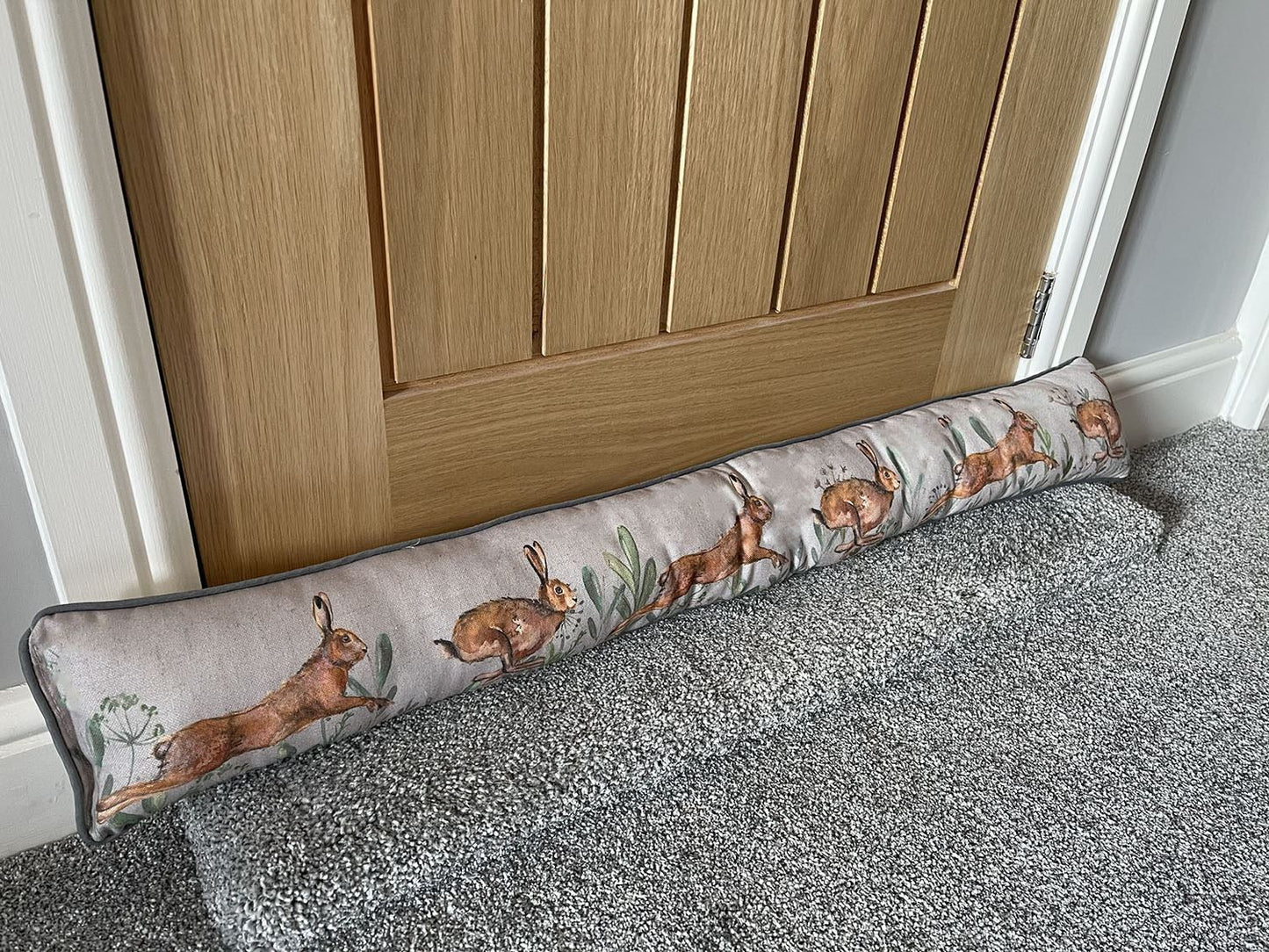 DRAFT EXCLUDER: Our gorgeous hare draught excluder is a unique design for an item that is normally non descriptive, making them ideal for those looking for something a bit different