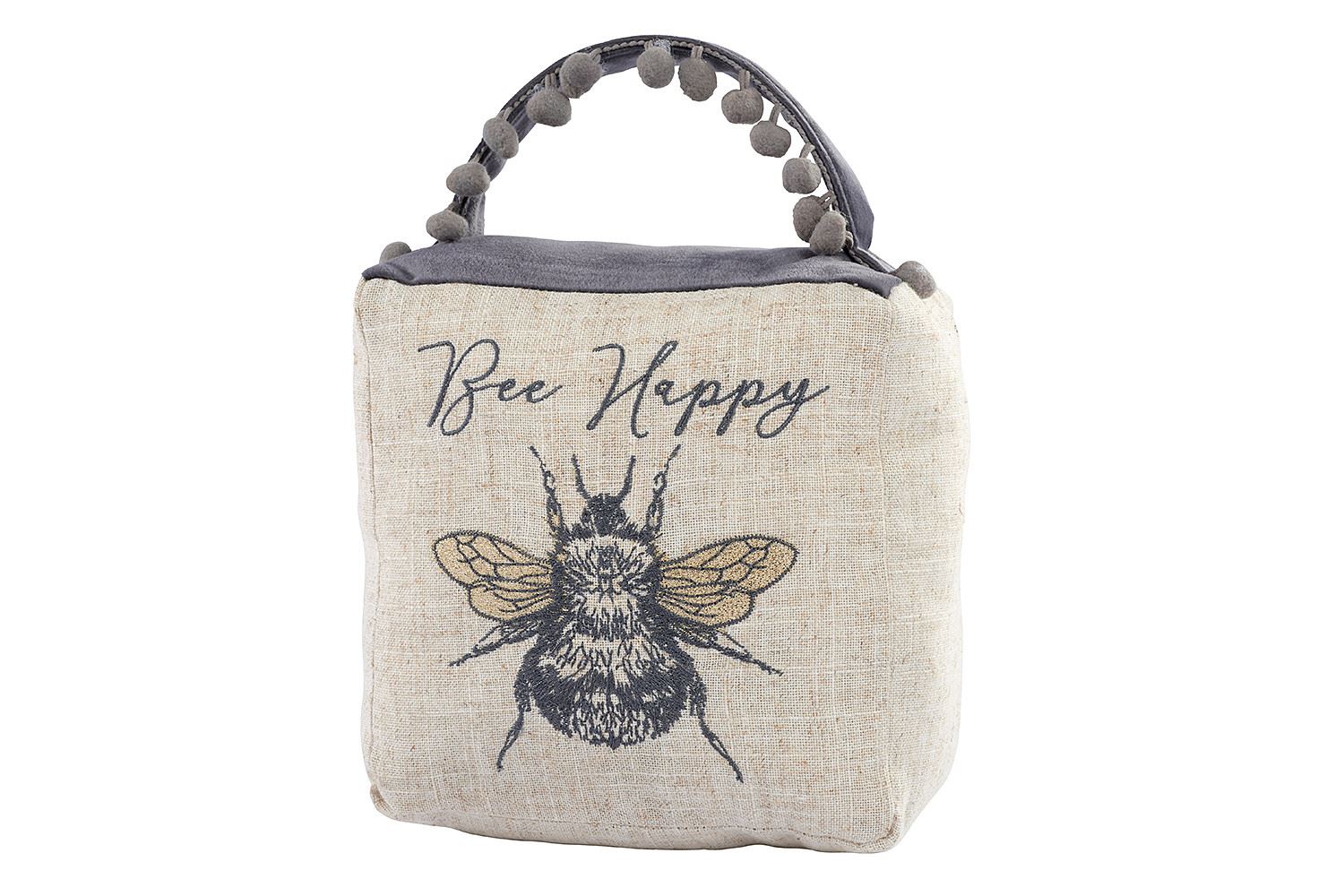 DOOR STOP: Prop open your doors in style with this beautiful fabric cube doorstop, featuring a pretty embroidered honey bee and decorative pom poms. Fashionable and hard-wearing, perfect for any busy household