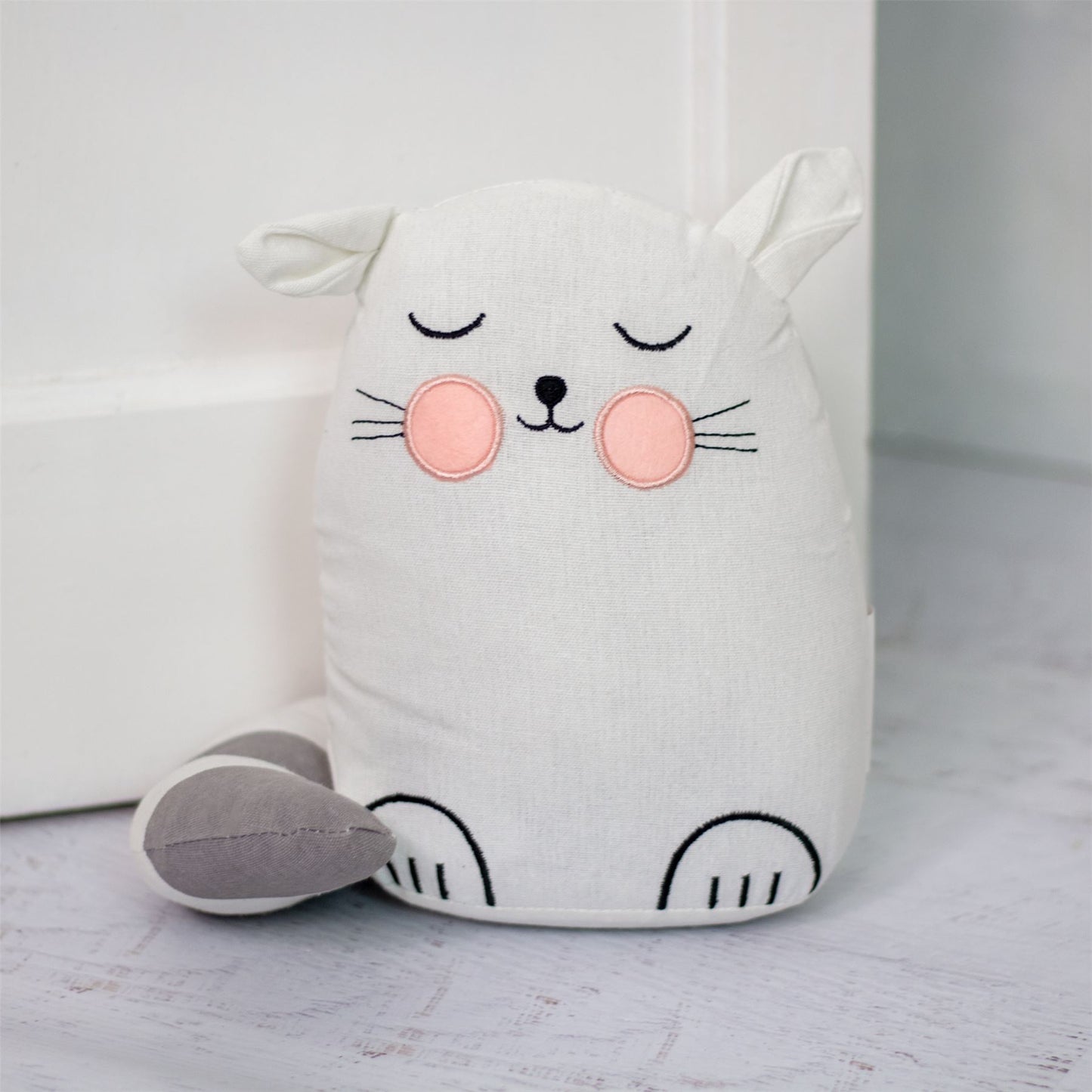 Childrens Fabric Cat Doorstop | Kids Cat Doorstops Animal Door Stopper - White