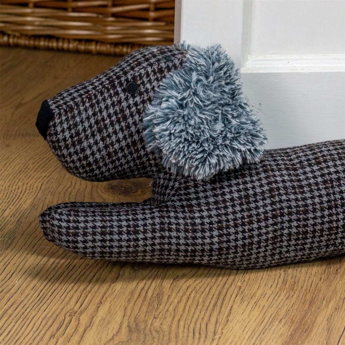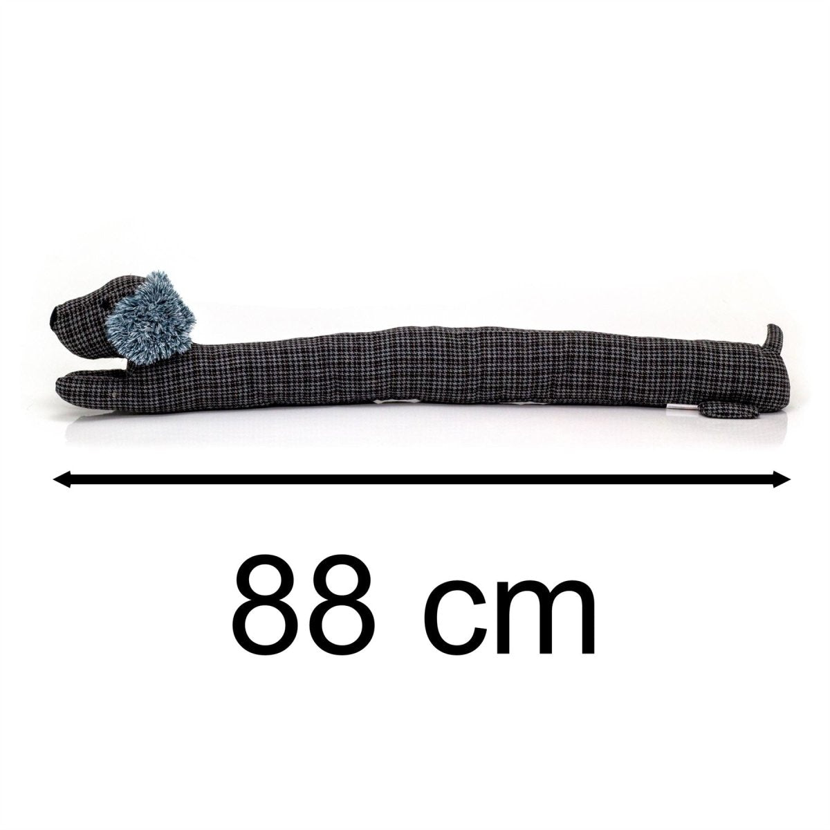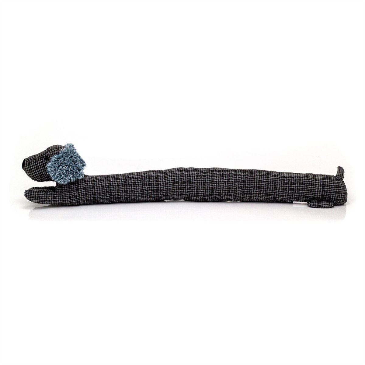 STYLE MEETS FUNCTIONALITY | With its handsome herringbone fabric and obedient posture, our black sausage dog draught excluder seamlessly blends style and function. It's not just a home accessory; it's a statement piece that adds character to any room