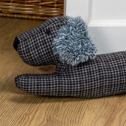 Herringbone Dachshund Draught Excluder Fabric Sausage Dog Draft Excluder - Black