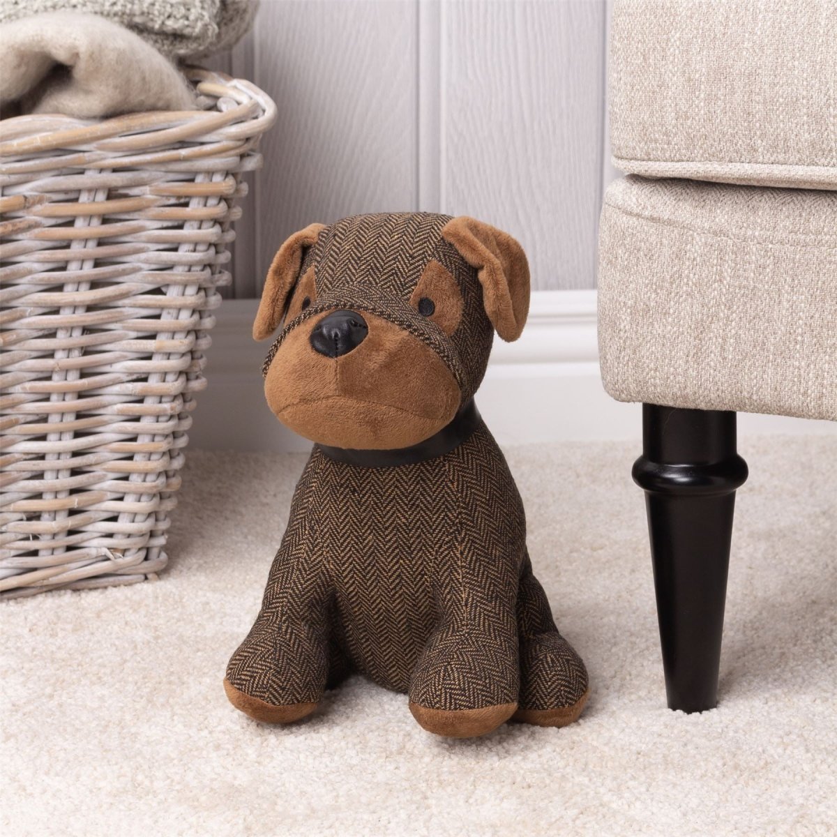 Say hello to your new loyal companion - Oscar, the brown herringbone dog doorstop, here to keep your doors open and your home filled with charm