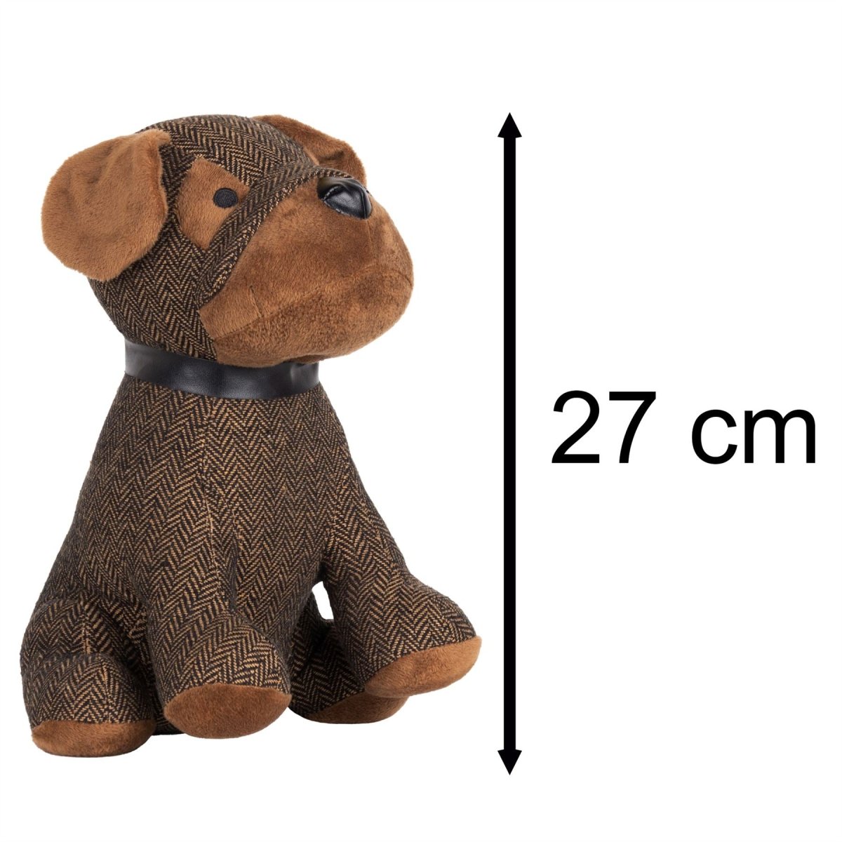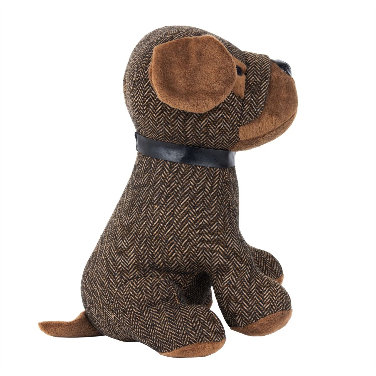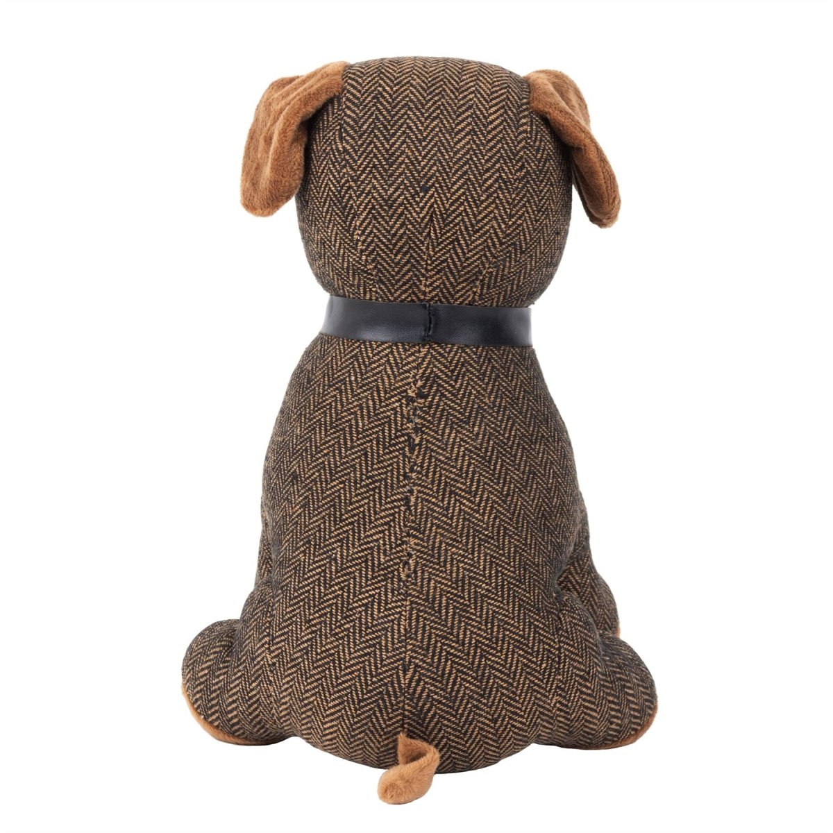 Oscar Dog Doorstop | Brown Herringbone Fabric Dog Shaped Door Stop - 27cm