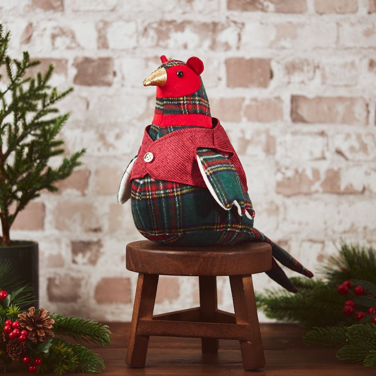 PHEASANT DOORSTOP | Meet Percival, dressed in his finest green tartan fabric and a snazzy red waistcoat, complete with a gleaming gold beak and magnificent tail feathers. He’s a charming addition to your Christmas decor!