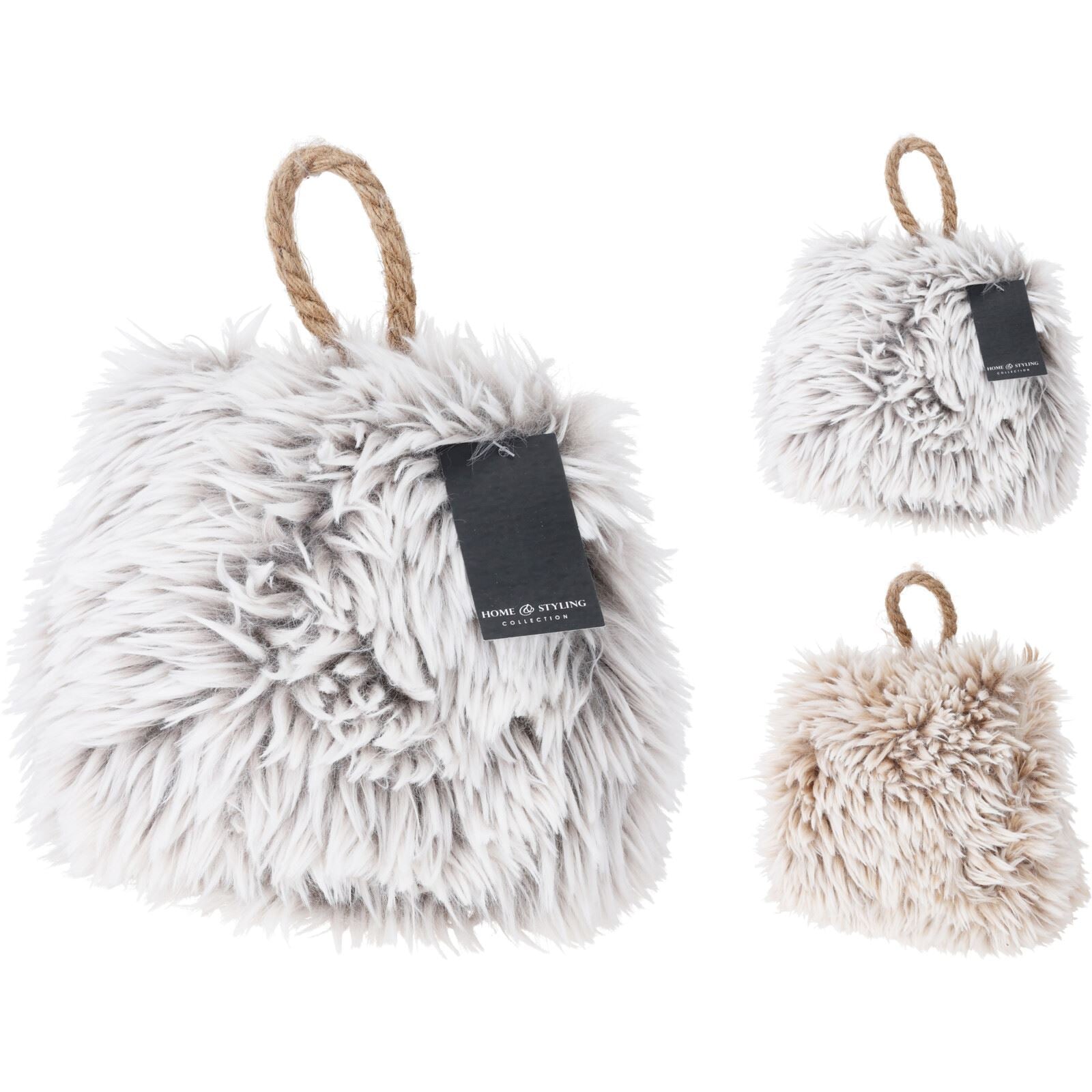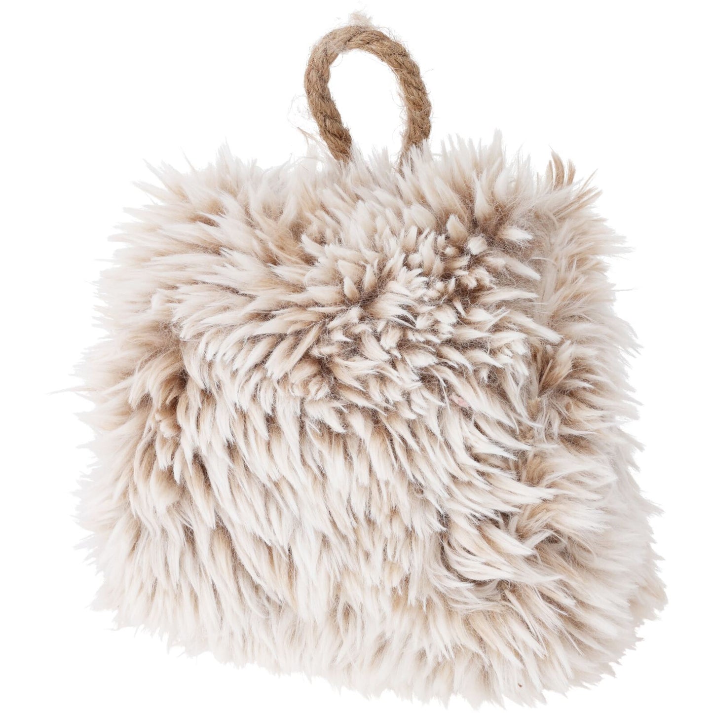 FAUX FUR DOORSTOP | Add a touch of luxury to your home with this faux fur doorstop. Its plush, fluffy finish and elegant jute handle blend style with functionality, making it a charming addition to any room