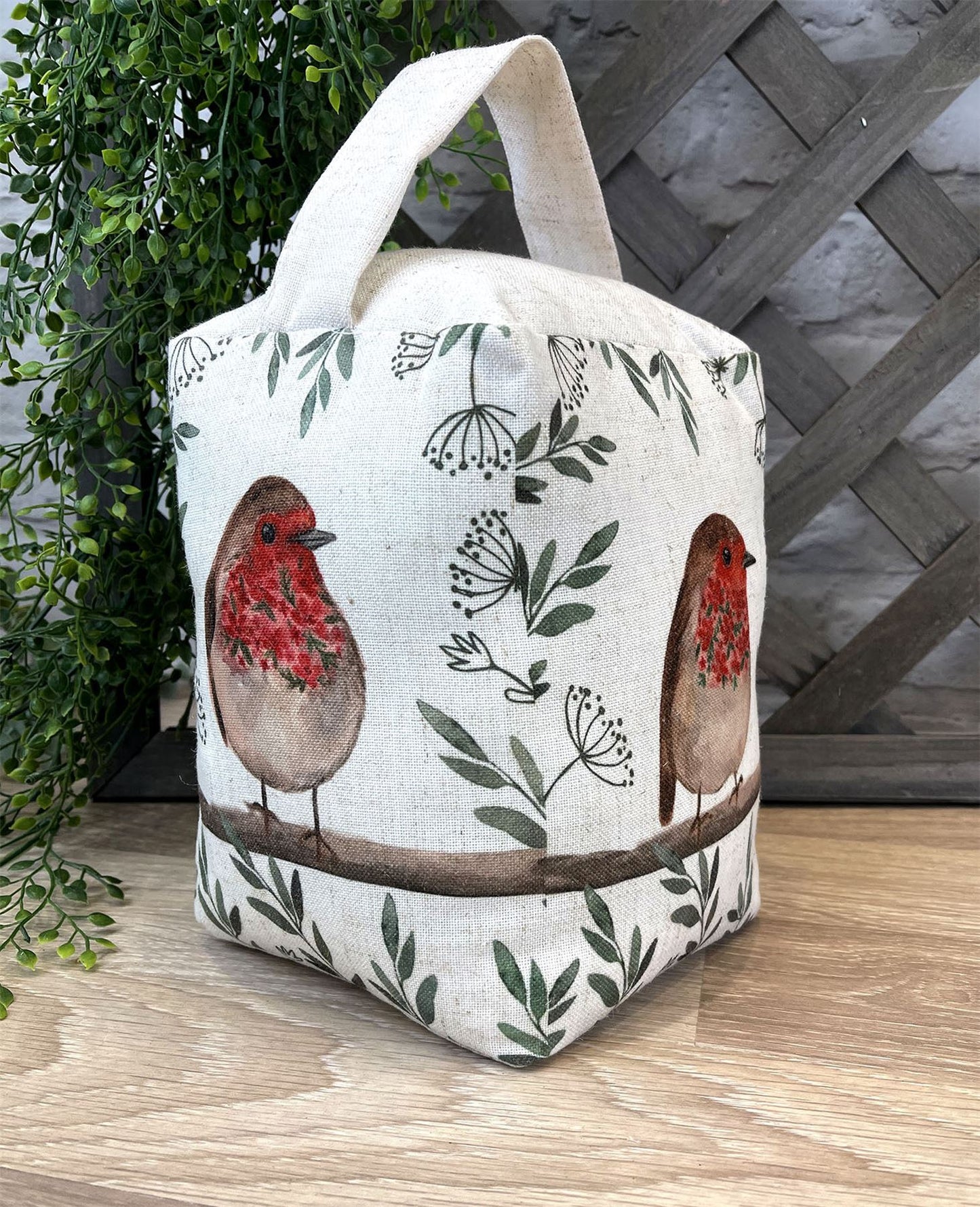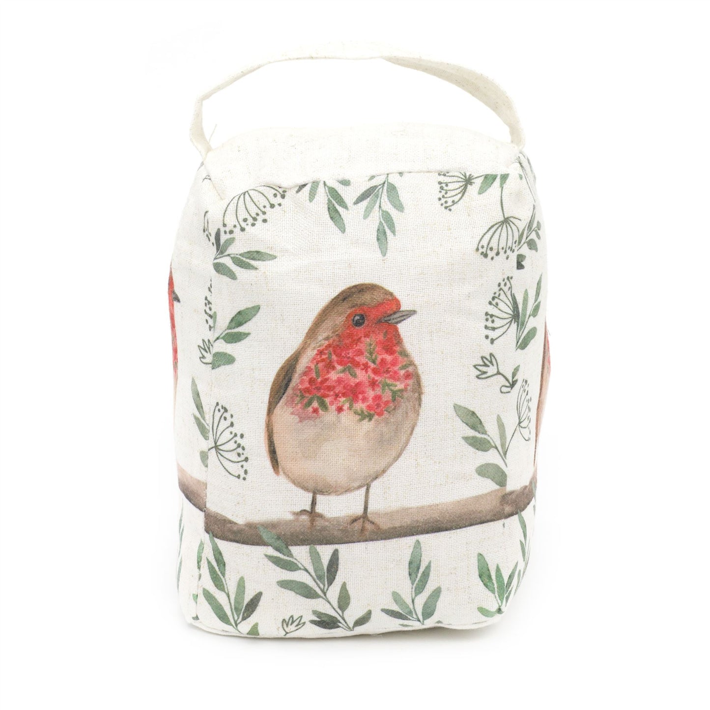 Robin Redbreast Bird Fabric Cube Door Stop | Decorative Bird Animal Doorstop | Country Life Door Stopper