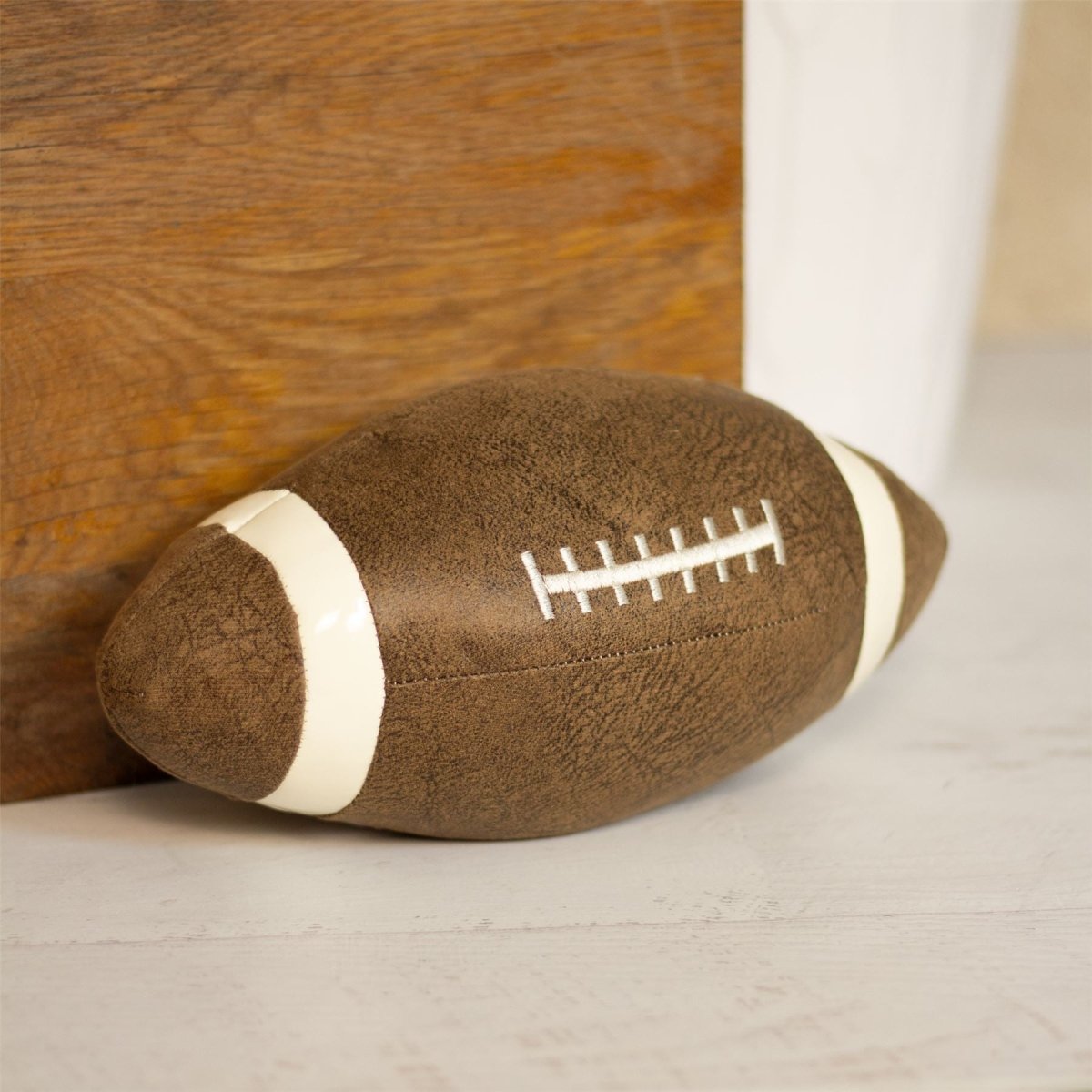 SPORTY STYLE DOORSTOP | A fun rugby ball doorstop with faux leather and lifelike stitching, great for adding character to any room