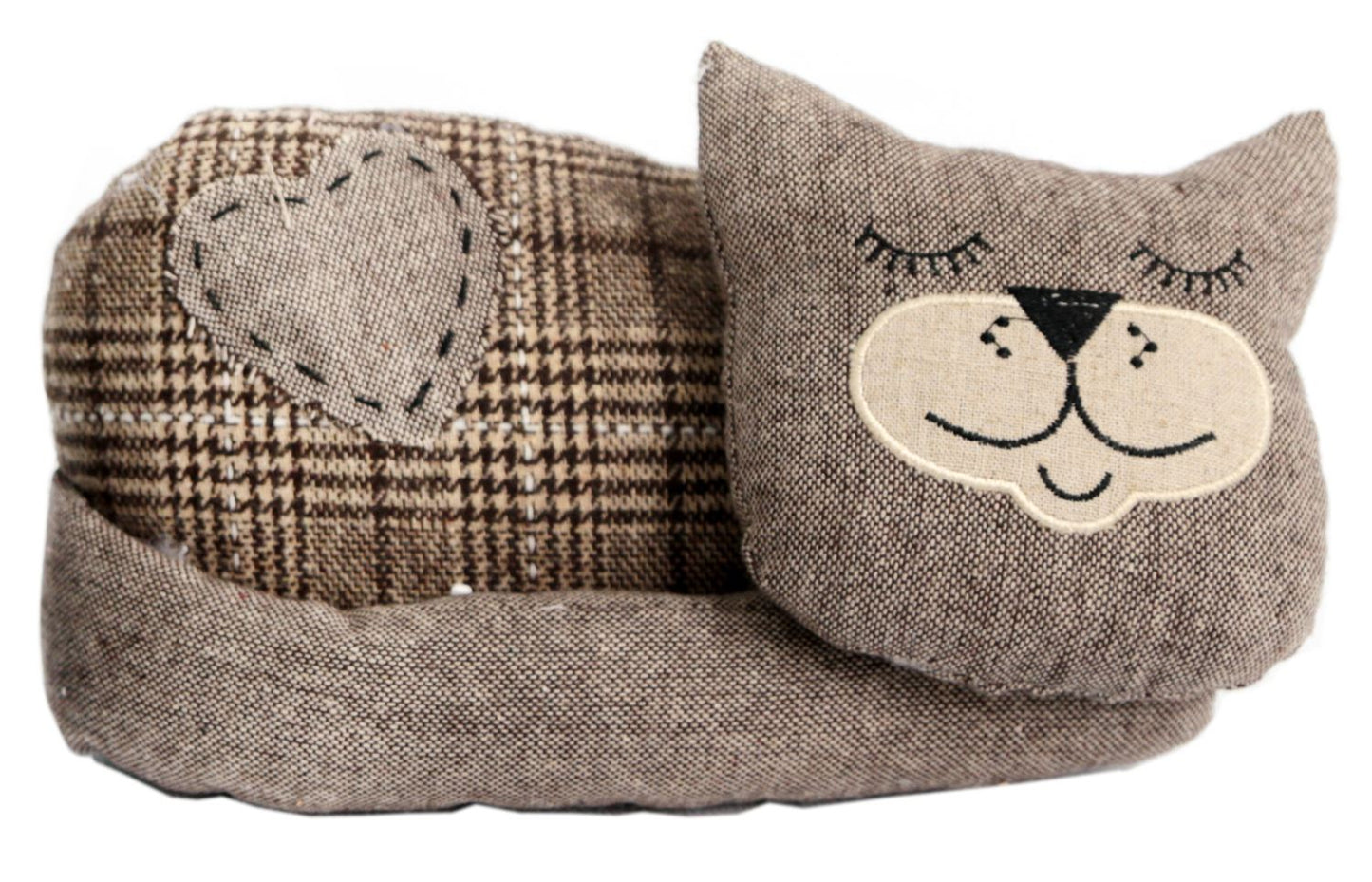 DOORSTOP: This delightful brown fabric cat doorstop is the purrfect way to prop open your door, posed sleeping with it's head resting peacefully on his tail, a very adorable accessory for your home or office, this gorgeous little feline is must have for cat lovers