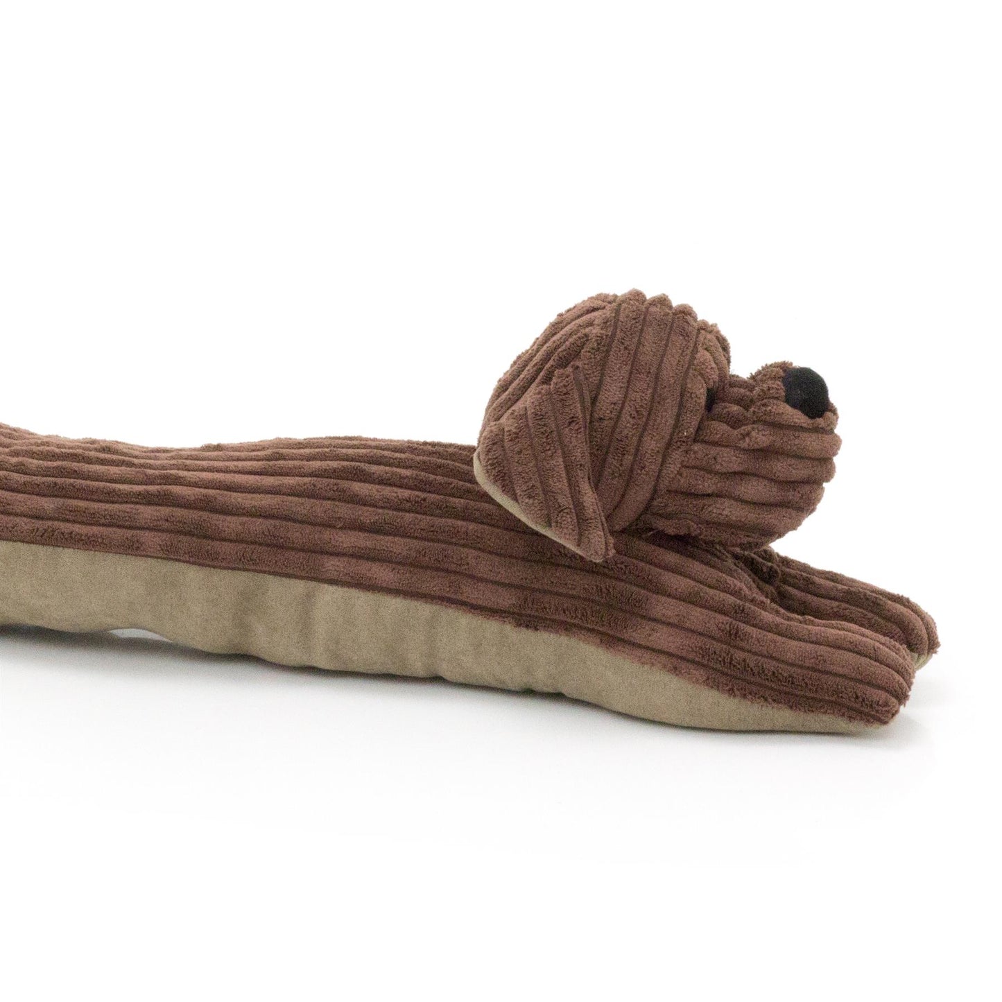 DRAFT EXCLUDER MEASUREMENT: Ribbed chocolate fabric dog draught excluder novelty door draught cushion measures approximately 82cm x 10cm x 16cm