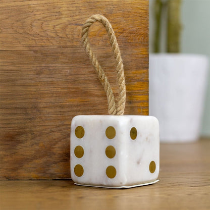White Marble Dice Doorstop | Chunky Cube Indoor Weighted Dice Door Stop - 1.5kg