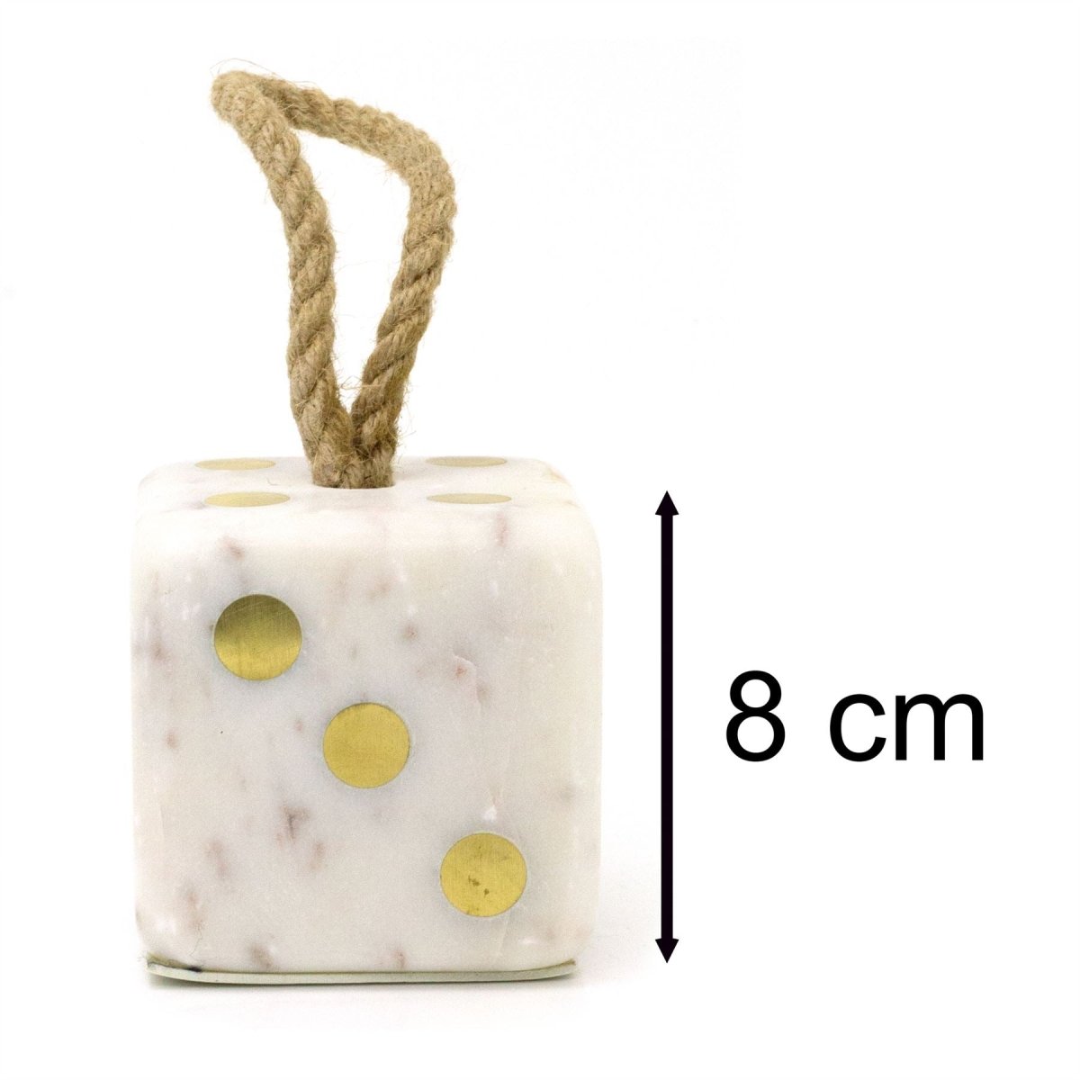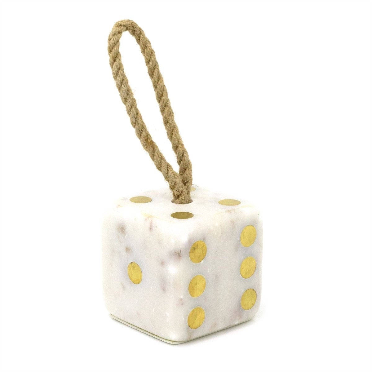 Add a playful yet elegant touch to your space with this striking white marble dice-shaped doorstop. Its crisp white finish and unique patterns make it a stylish statement piece for any home